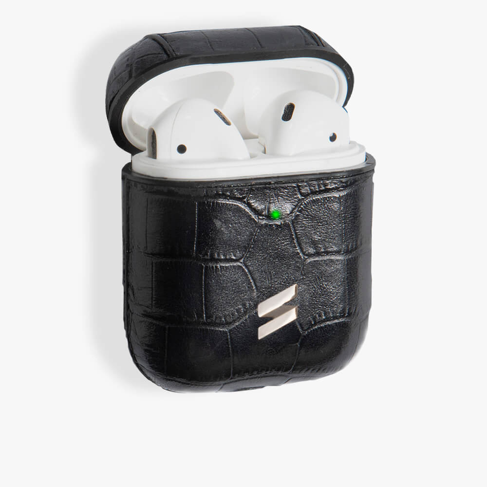 Geef uw Apple AirPods een unieke look met de nieuwe SIDNEY BLACK SURITT-hoes gemaakt van echt rundleer met een zwarte krokodillenprint, met een zachte en flexibele textuur beschermt het uw Apple Airpods tegen vallen en krassen. Het hoesje is licht in gewicht en vergroot de omvang van uw AirPods niet. Het lederen hoesje past zich gemakkelijk aan de AirPods aan en stelt u in staat om ze eenvoudig op te laden met de bekabelde of draadloze oplader.