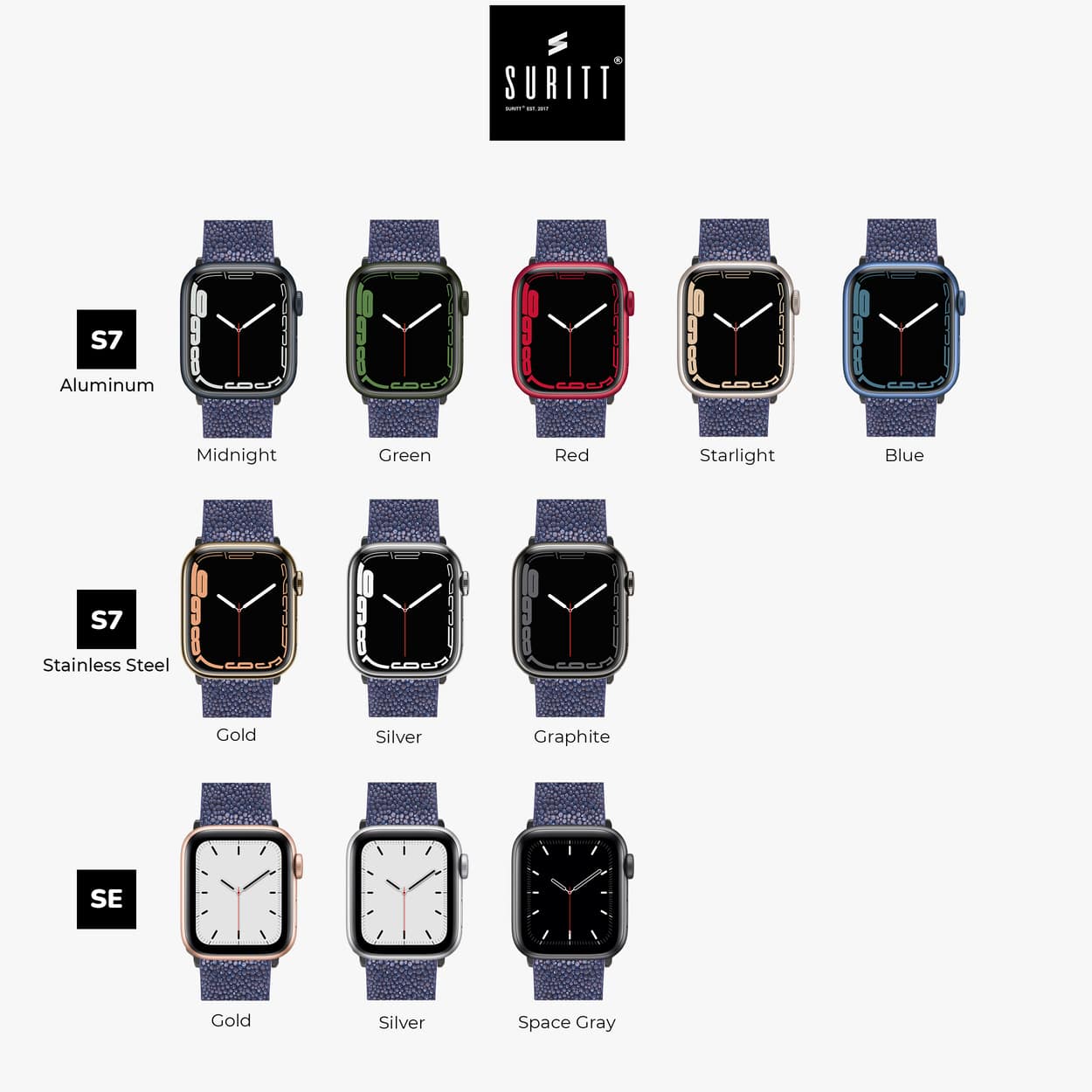 • Ze worden geleverd met adapters die al zijn gemonteerd in de kleur van uw keuze (zilver, goud en zwart) die passen bij uw Apple Watch Series 9, Ultra 1-2, SE en alle eerdere versies van Apple Watch.