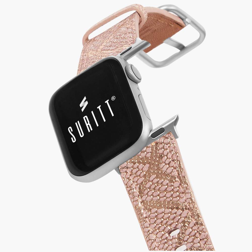 Een accessoire dat niet onopgemerkt blijft; het bandje voor Apple Watch PARIS ROZE geeft uw smartwatch de kleur die bij u past. Dit model gemaakt van authentiek roze leer met slangenprint en reflecties in roze goud. Het perfect onderhouden interieur is gemaakt van bruin leer. Alle SURITT-producten worden volledig in Spanje vervaardigd, met de beste materialen en met een ambachtelijk productieproces dat de authenticiteit van al onze producten waarborgt.