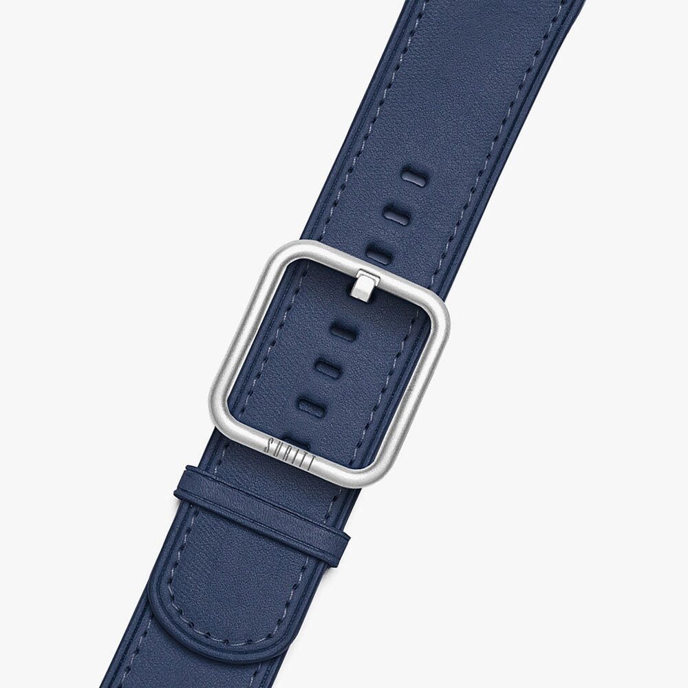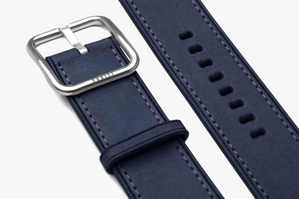 SURITT presenteert de RIO smartwatch-band, handgemaakt in Europa door de beste ambachtslieden. Midnight Blue leer gecombineerd met een bruine voering en steken die langs de horlogeband lopen.