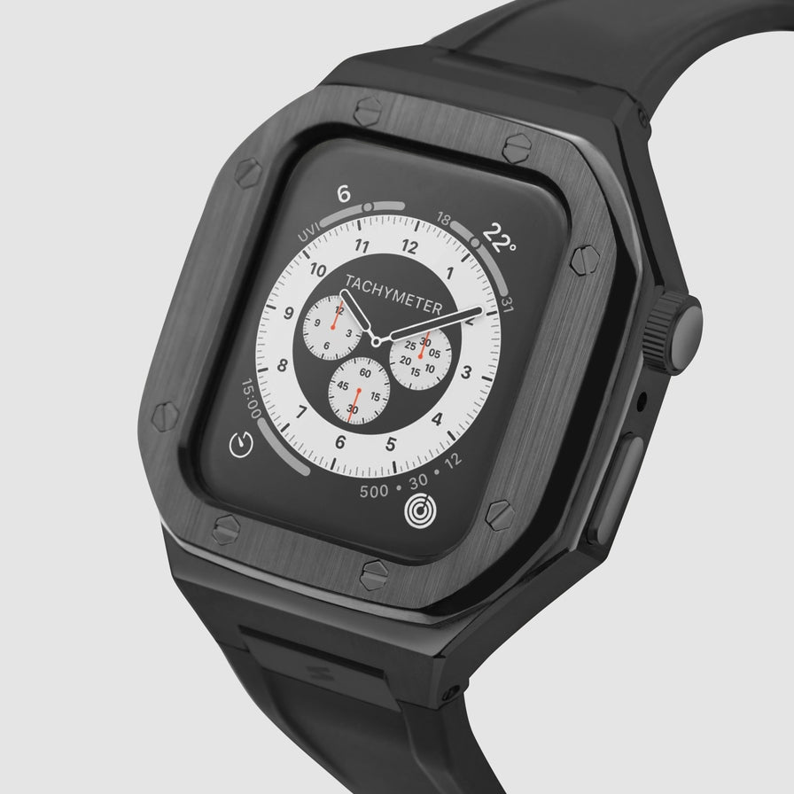 Met de Suritt Black Sport iwatch case verander je het uiterlijk van je Apple Watch totaal, met de vorm van een analoog horloge maar met alle functionaliteiten van je Apple Watch.