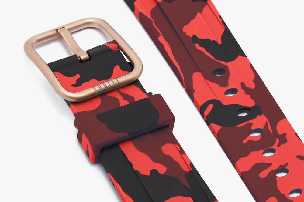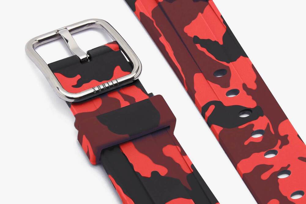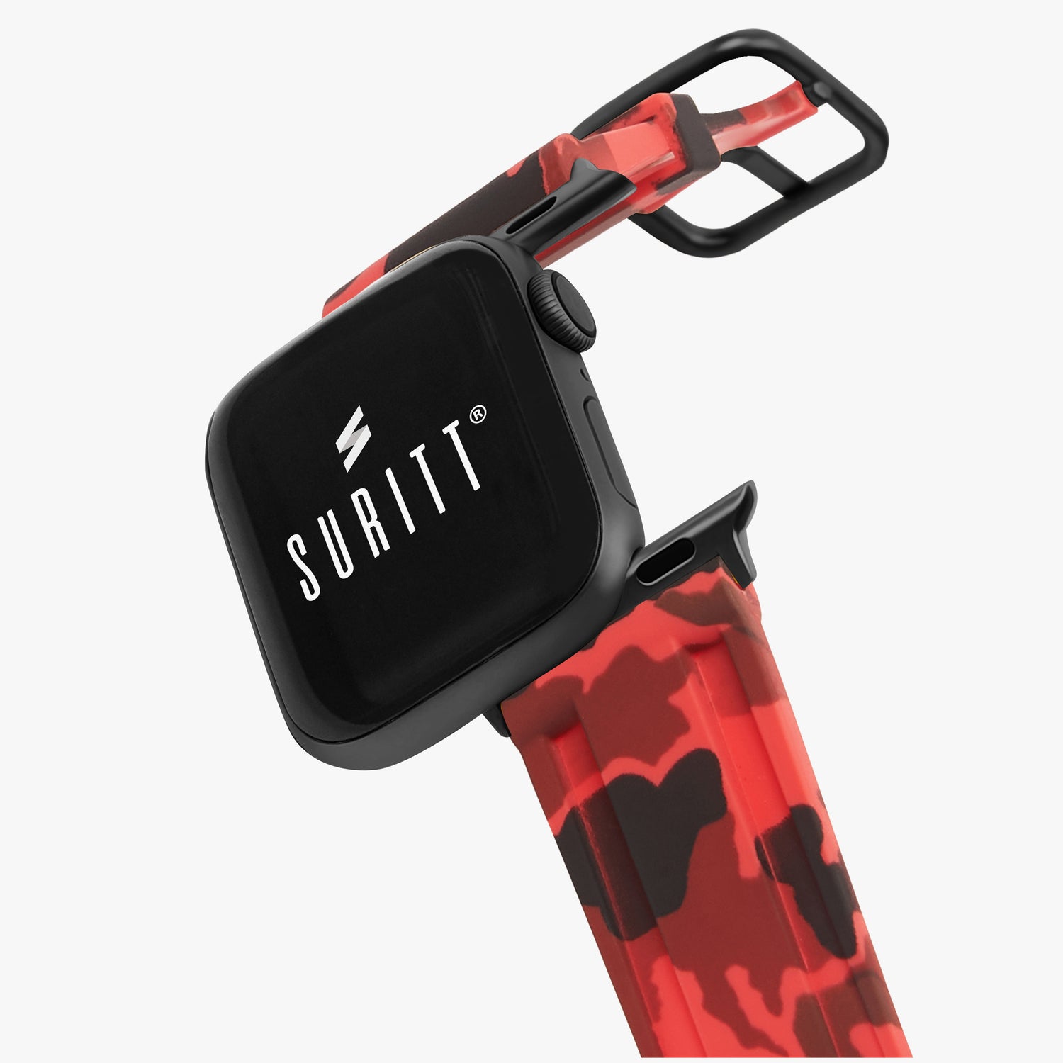 SURITT presenteert de Apple Watch Sport Band Red Camo, gemaakt van zachte siliconen en ontworpen met een zeer onderscheidend rood camouflagepatroon dat u een unieke en sportieve look geeft.